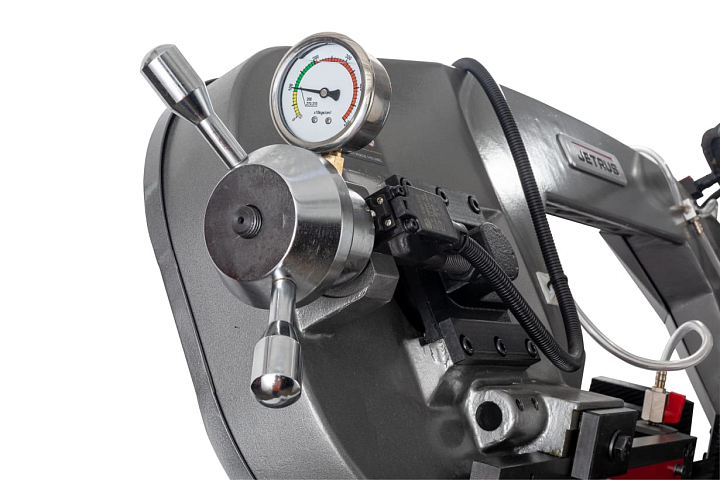 Инверторное управление двигателем позволяет поддерживать постоянную скорость движения полотна при изменении нагрузки. Скорость движения ленточного полотна регулируется потенциометром плавно в диапазоне от 0 до 80 м/мин, что позволяет пилить как трудно обрабатываемые, в т.ч. высоколегированные стали, так и легко обрабатываемые цветные сплавы, в т.ч. различные марки алюминия и получить самое высокое качество и производительность.