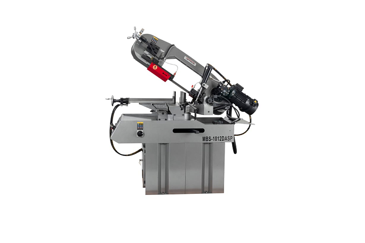 Модель MBS-1012DASP имеет регулируемую направляющую для регулировки прохода ленточного полотна в зависимости от формы заготовки и ее диаметра. Направляющие блоки осуществляют позиционирование полотна непосредственно под прямым углом к поверхности обрабатываемой заготовки. Максимальная стойкость ленточного полотна обеспечивается подачей СОЖ в зону резания.